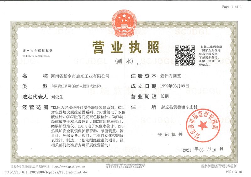 河南省新鄉市啟東工業有限公司始建于1987年,是專注研發、生產自動化儀器儀表(主要與壓力容器、鍋爐等容器配套使用)的廠家。主要產品有液位計(磁敏雙色型、磁翻柱型等)系列、烤包器熄火聯控裝置系列、壓力容器快開門安全聯鎖保護裝置系列、鍋爐報警器系列。二十多年來,公司產品暢銷國內并遠銷俄羅斯、蒙古與東南亞,深得廣大用戶的信賴和好評。我們多年來致力于自動化儀器儀表的研制生產,公司現具有完善的生產、試驗、檢測手段和設備??萍紕撔?、誠信服務,是我們不變的經營理念,我們將以強有力的技術支持及售后竭誠為客戶提供良好的服務?! ?012年我公司成功研發了KCL系列烤包器熄火聯控裝置,并于2013年2月2日榮獲中華人民共和國國家知識產權局辦法的《實用新型**證書》<**號:2021202257735>該產品廣泛應用于唐鋼等大型鋼鐵企業,為烤包器安全作業提供了有力的保障。  2002年我公司成功研發磁敏電子雙色液位計獨特的高亮度LED紅綠雙色顯示,獲得了專家的首肯和用戶的一致好評。在此基礎上我公司研發人員十年磨一劍,致力于XQFB-1防爆型磁敏雙色液位計的研發,于2013年12月27日由國家防爆電器產品質量監督檢驗中心檢驗合格并頒發防爆合格證書<編號:cnex19.0883>。該產品性能得到了充分的發揮,廣泛應用于含有Ⅱ類A·B級T1-T4組可燃氣體或蒸汽與空氣混合形成的爆炸性混合物的0區、1區危險場所。連接用戶DCS或PLC系統實現遠距離集中顯示和控制,從而實現節能、數字化管理。為用戶增加了一定的經濟效益和社會效益,。2014年公司成功申請了夢潤儀表的logo,新的品牌新的形象,夢潤儀表是啟東的LOGO, 歡迎新老用戶前來洽談合作。  我們一如既往地注重科研的投入,憑借產品的不斷更新、加大科技含量,進一步拓展市場。我們相信品質成就未來,以過硬質量、優惠價格、完善的售后服務熱忱歡迎廣大客戶來我司視察指導、洽談業務;精誠合作,共創輝煌!